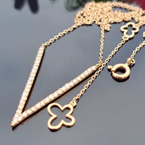 14k Rose Solid Gold "V" Diamond Necklace * 16 inch