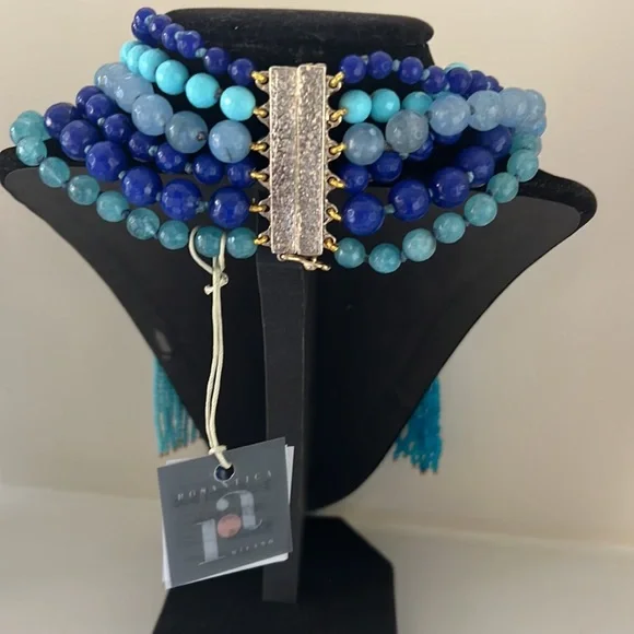 Rosantica Multi Strand Tassel Blue Necklace