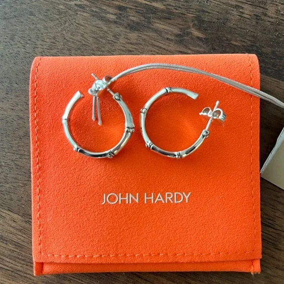From John Hardy, these sterling silver Bamboo Hoop earrings are handcrafted in Bali and exemplify the brand´s attention to detail and excellence in design. This exotic style features a curving row of artistically represented bamboo, creating a hoop design. As a part of the John Hardy Bamboo Collection, this earring style allows John Hardy to continue with its sustainability endeavors to give back by planting one bamboo seedling with every purchase. These earrings measure one inch in diameter with post back closures."Wear Bamboo, Plant Bamboo" | The purchase of this style ensures the sowing of 1 bamboo seedling by JOHN HARDY.I received these as a gift but they’re not my style. They will be shipped with tags and in a John Hardy dust bag with John Hardy polishing cloth.