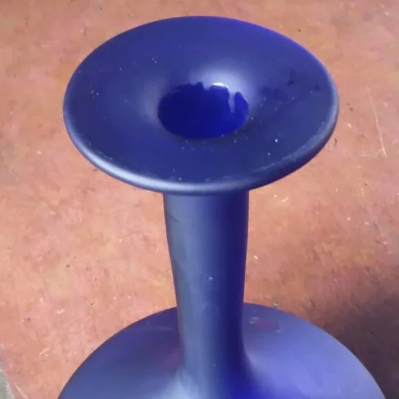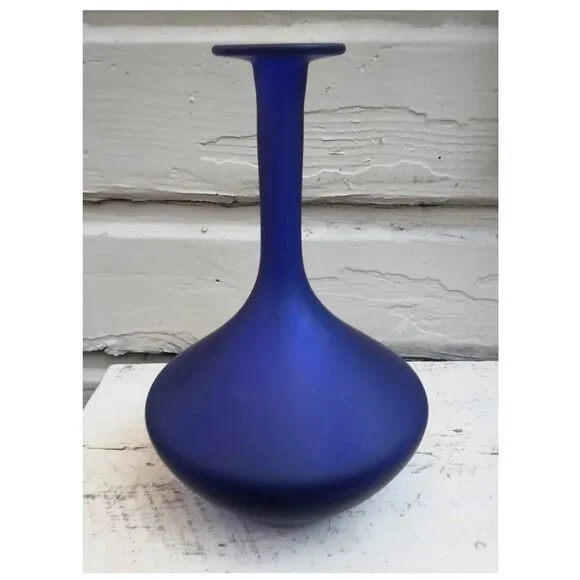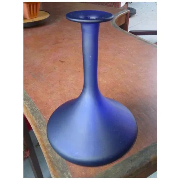 VTG Satin Frosted Dark Blue Modernist Hand Blown MCM Moretti Style Vase by Zodax