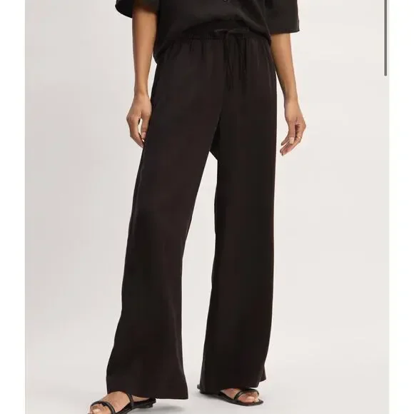 18 inch waist laying flat.13 inch rise.30.5 inch inseam. This piece features an elastic waist with drawstring closure, wide leg, and front angled pockets. 100% TENCEL™ Lyocell. Retails for $118. New without tags.Ship Same/Next Day, Professional Seller. Offers Welcome.Bundle & Save!90s. Preppy. Casual. Trend. Fall Fashion. Minimalist. Old Money. Quiet Luxury. Sophisticated. Office. Euro Summer. Feminine. Classic. Holidays. Classy. Boho.