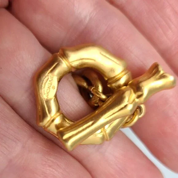 Add some vintage glam to your jewelry collection with this stunning Givenchy jewelry set. The set includes a 40" necklace and clip-on earrings, both in a beautiful brushed gold...