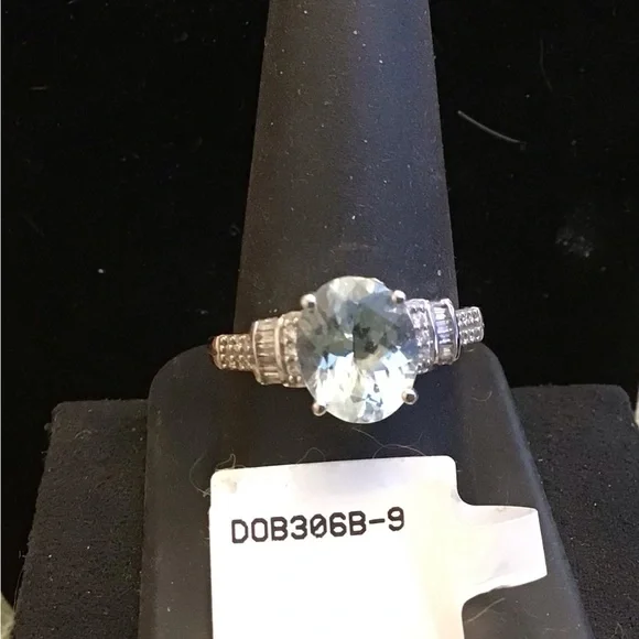 JTV 10K White Gold 2.25ctw Aquamarine & Diamond Ring