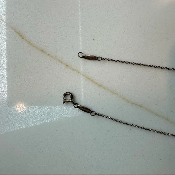 Tiffany & Co silver necklace with diamond in the center. Needs to be polished and shined but got lots of wear out of this necklace and still in great shape. #tiffany&co #diamond #diamondnecklace #tiffanys #silver