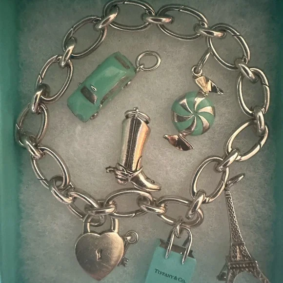 Signature Tiffany & Co. shopping bag charm. Blue enamel and sterling silver. Every collection needs this one! Original box and pouch included.