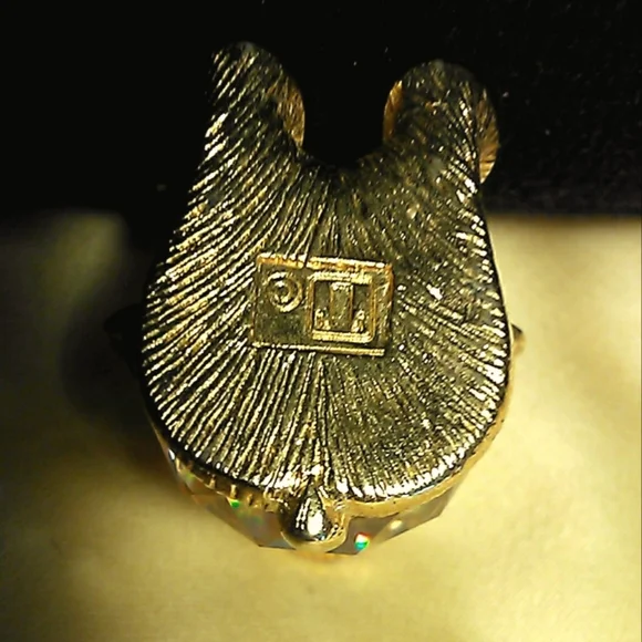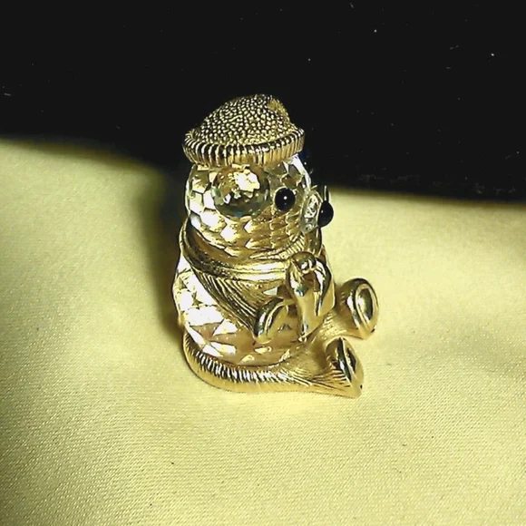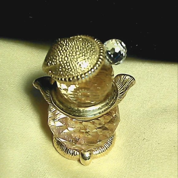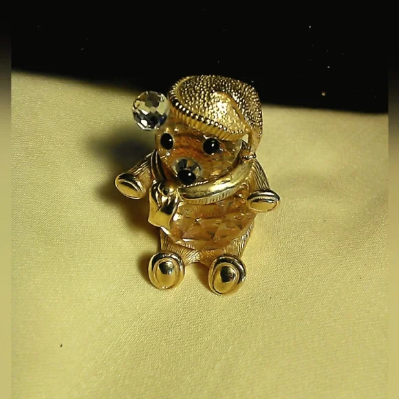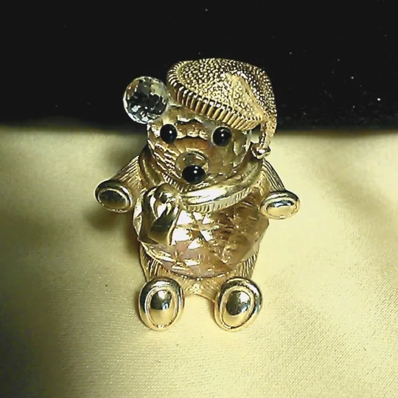 THIS IS JUST A PRECIOUS BEAR MADE WITH THE FAMOUS SWAVORSKI CRYSTALS. HE HAS GOLD TRIM FOR FEET, HANDS, SCARF AND A HAT. THE FACE HAS BLACK EYES AND NOSE.