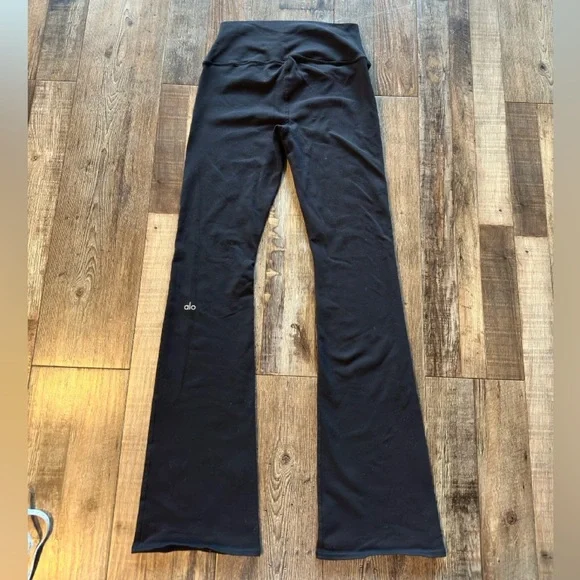 Alo Airbrush High Waist Bootcut Legging Black Size Small Full Length. Great preworn condition, no flaws. You’re obsessed with bootcut looks, and we don’t blame you. The Airbrush High-Waist Bootcut Legging in sculpting performance Airbrush is sweet from every angle, with a wide waistband & a forward, bootcut leg. Show them off with your favorite cropped tee or bra top & you’re ready to hit practice or pavement. Medium compression signature Airbrush performance fabric4-Way stretch for a move-with-you feelFlat-locked seams for comfortMoisture-wicking & odor resistantFront-smoothing panel for commando comfortMachine wash cold on gentle cycle, inside out, with like colors. Do not wash with towels. Do not bleach. Tumble dry low.#655