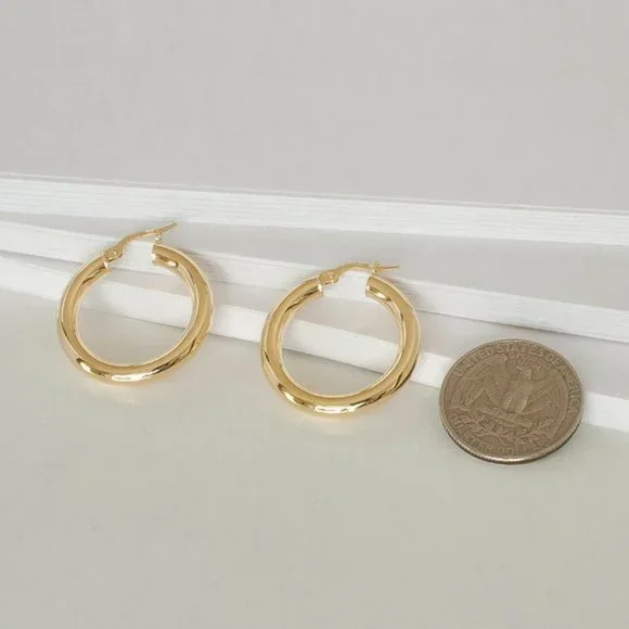Thick 4 mm Gold Hoop Earrings Real 10K Yellow Gold Hoops NEW! Stamped 10K ITALY