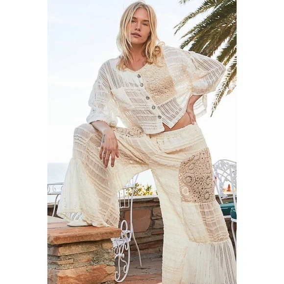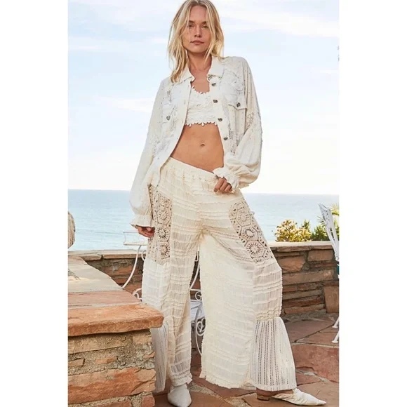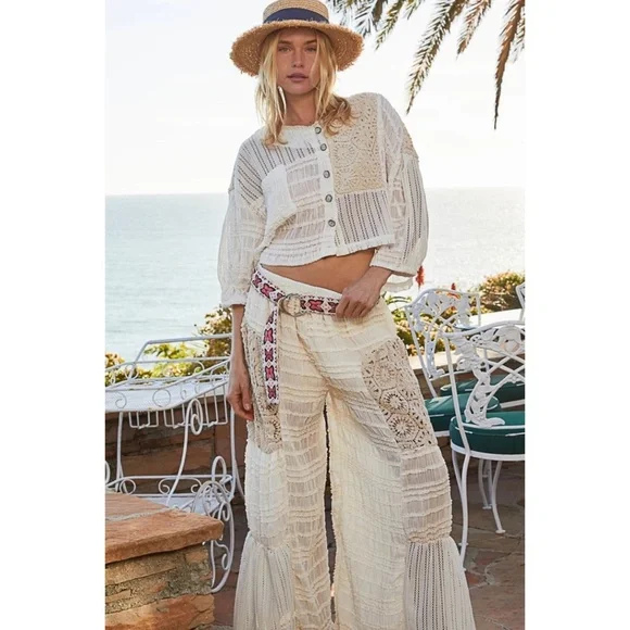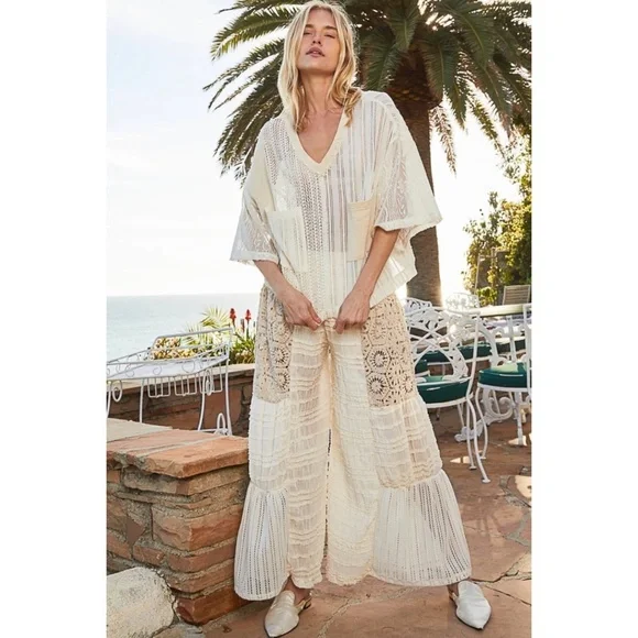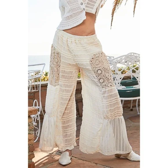 POL Natural Cream Woven Baby Ruffled Wide Leg Pants with Crochet PatchBRAND NEWFeaturesRelaxed FitHigh Quality- Not as Delicate as in PhotosShort Length Lining That Do Not...