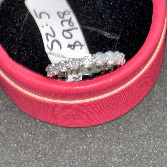 Silver and 2ct Moissanite Band Ring in Gift Box & with Certification