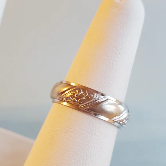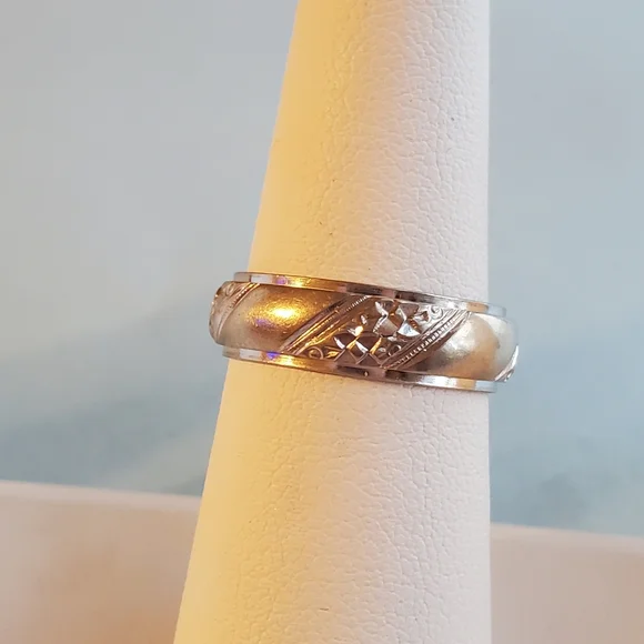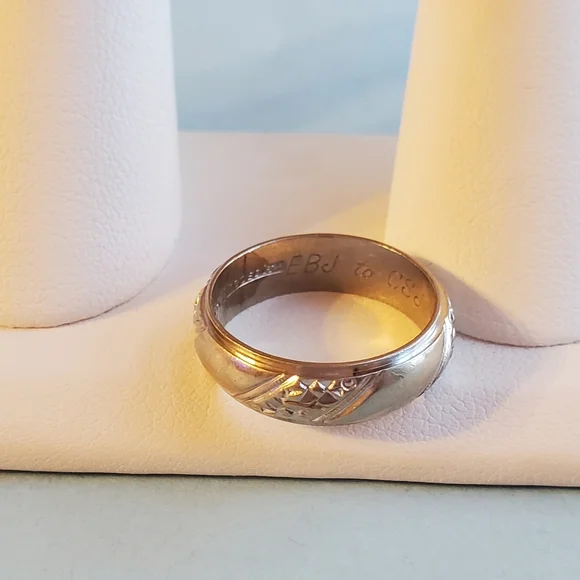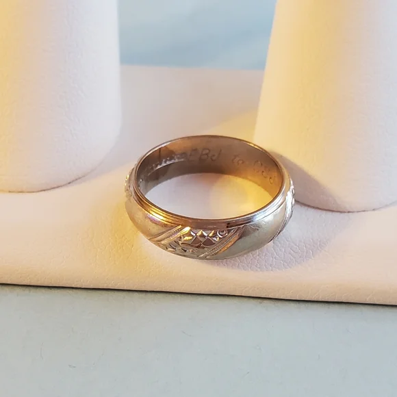 Unisex, Vintage, Marked 14k Keepsake, size 7, 6mm wide, beveled edge, cigar band with etched detailing, 5g white gold**Engraved on the inside EBJ to CSJ 5/17/60Keepsake is one of the nation´s oldest and best known jewelry brands. Established in Syracuse, New York in 1930, Keepsake is known for its quality, fine engagement rings. Shop with confidence. I´m a top rated seller, & fast shipper! If you don´t already have aacct., sign up today with code LIVELIKECOCO and get $10. Need more help? I´m a Posh mentor, message me anytime. XOXO, Melissa