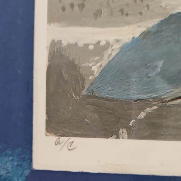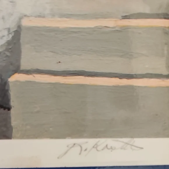PRINT SIZE= 8.5 X 8.5 INCHES.SIZE WITH BLUE MATTING= 15.5 X 15.5-inch appox. USE WITH CURRENT BLUEMATTING. OR CUT OUT PRINT ANDFRAME.Mykonos by Rick Koestler. It appears to be a...