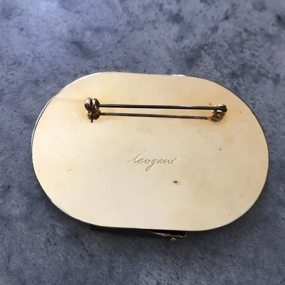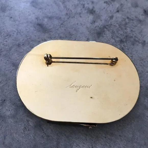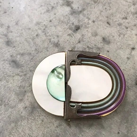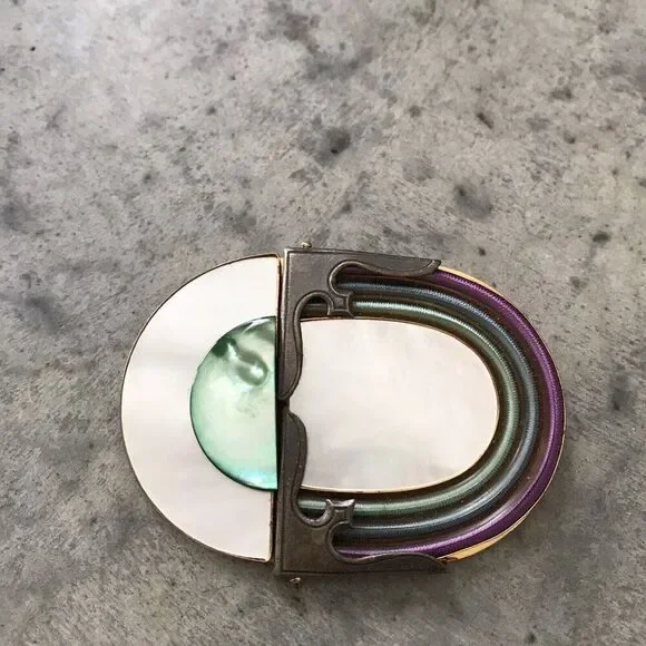 Langami Mother Of Pearl Art Deco Brooch Pin. Shipped with USPS First Class.No flaws Measures 3 inches by 2 inches