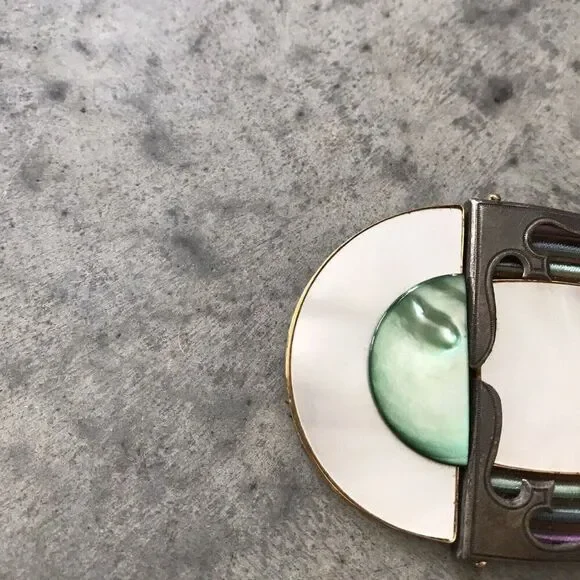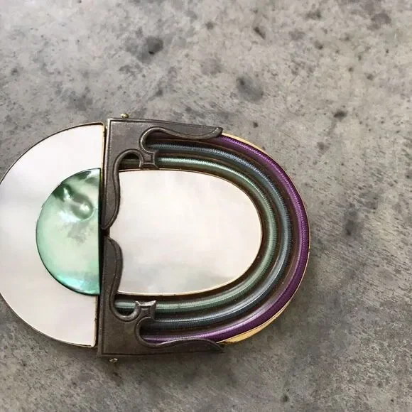 Langani Mother Of Pearl Art Deco Brooch Pin Oblong Antique Rare Vintage