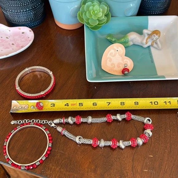 Ultra Rare HTF Brighton “GLOBAL DREAMS Red bead silver Necklace, 2 bracelets ( 1 is a Spellbound Bracelet but I love it together with that, but I can separate if you don’t...