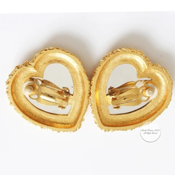 D´Orlan Earrings Oversized Heart Clip Style Statement Jewelry Vintage Oversized