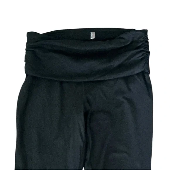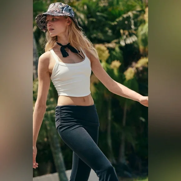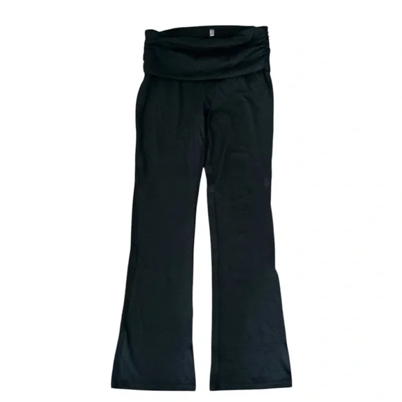 Hit the studio in these flattering leggings featured in a mid-rise fit and soft fabrication with folded waistband detail and subtle flared legs.Fit: Fitted silhouette, mid-rise, full-length legs Features: Soft fabrication with a stretchy feel, wide folded waistband with ruched detail at sides, minimal design, slightly flared hems Why We ❤ It: These versatile leggings can be worn pre- and post-workout to go to and from.95% Polyester, 5% ElastaneFit true to size$78 retailNWTSmoke free home