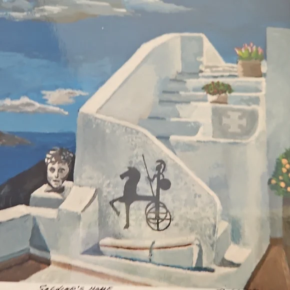 Vintage " Soldier´s Home" by Rick Koestler Greek Art Print Blue and White Hues