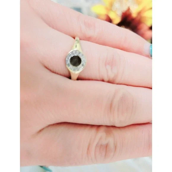 1Womens Signet Ring 10k Gold Genuine Diamond 0.10ctr Size 7