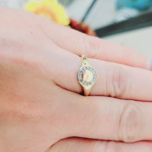 1Womens Signet Ring 10k Gold Genuine Diamond 0.10ctr Size 7.Beautiful genuine diamond signet ring for women. Diamonds are prong set around the face of the ring.Size is 7 on the ring