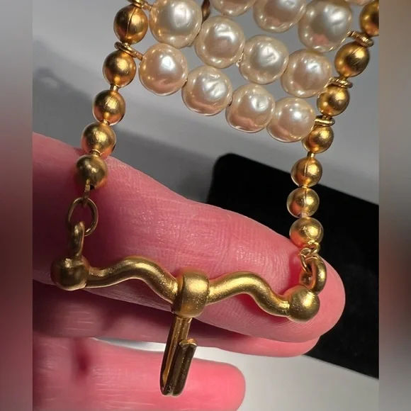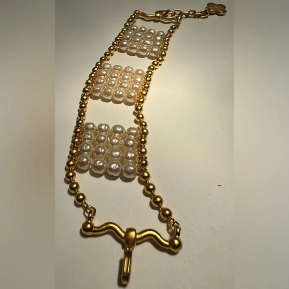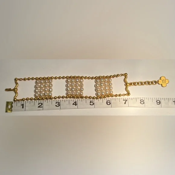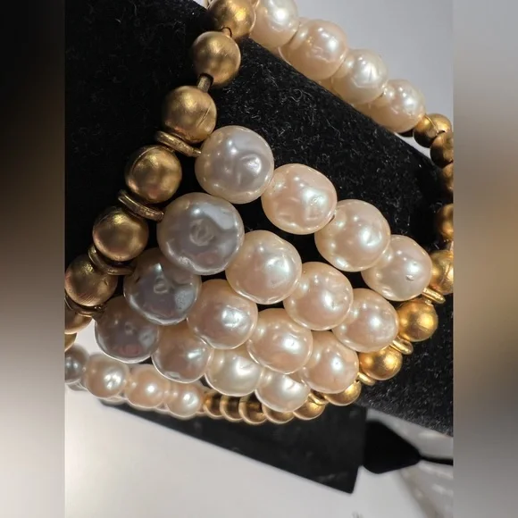 Vintage bracelet from Karl Lagerfeld bijoux, circa 1991Pretty and modern, this classic and unique bracelet has 6mm round Japanese glass light baroque pearls and 24kt gold plated...