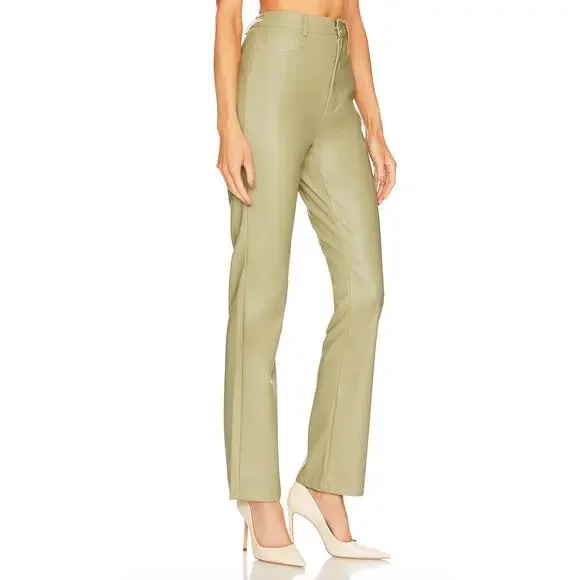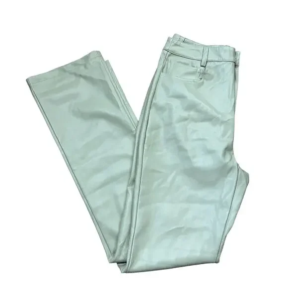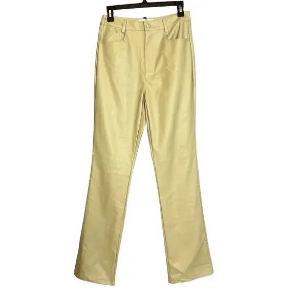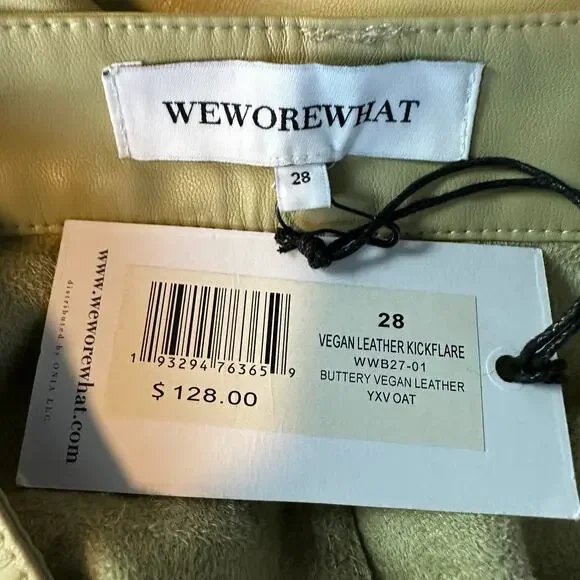 WeWoreWhat Faux Leather Kick Flare Pant Oat Beige Size 28 Bootcut 5 Pocket NEW