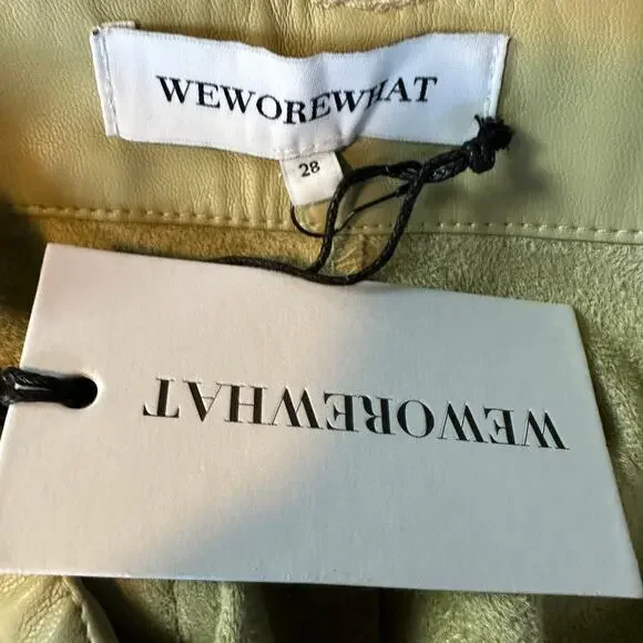 WeWoreWhat Faux Leather Kick FlarePant Oat Beige Size 28 Bootcut 5 Pocket NEWHigh rise with a bootcut flare, 5 pocket, buttery vegan leather, in a nude beige, great capsule...