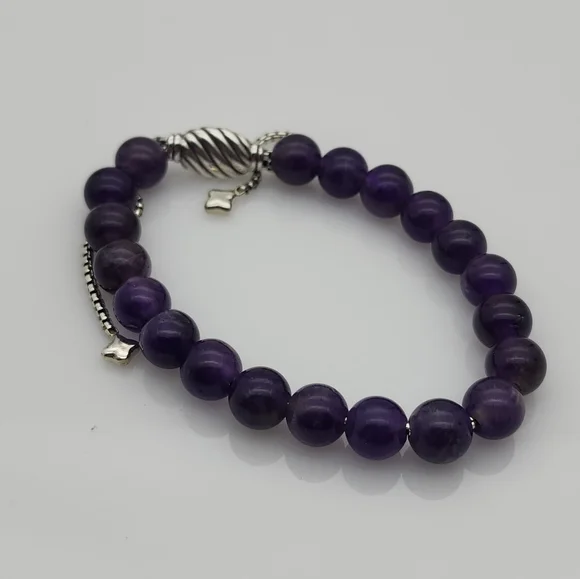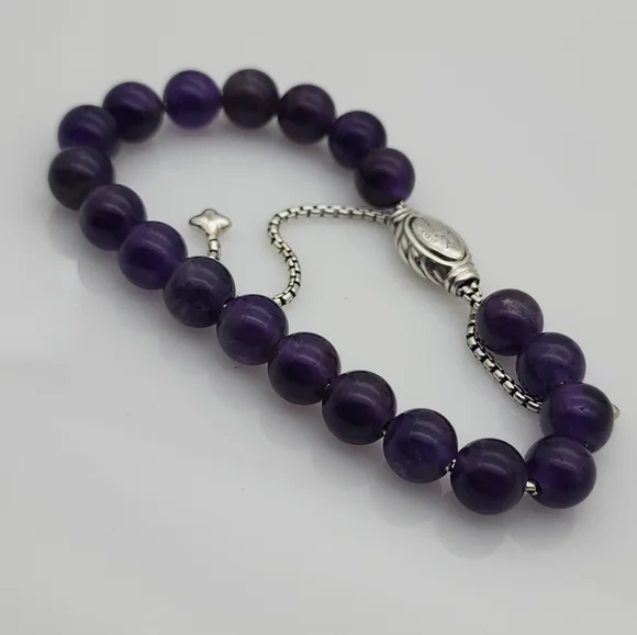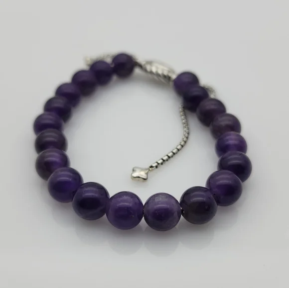 David Yurman Sterling Silver Spiritual Bead Bracelet with Amethyst
