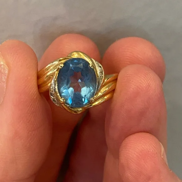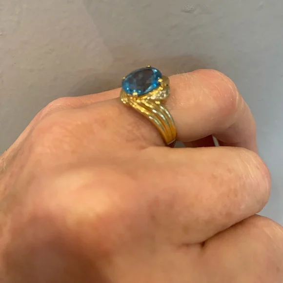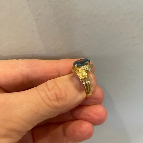 COPY - Vintage 14 k gold blue topaz ring with a small diamond on side…no bundle