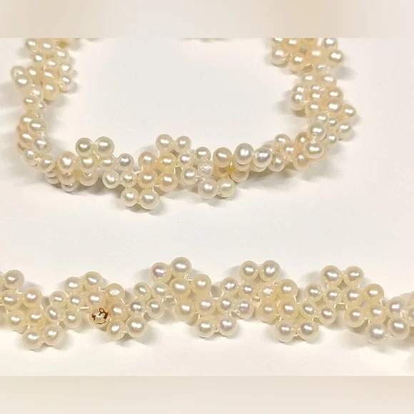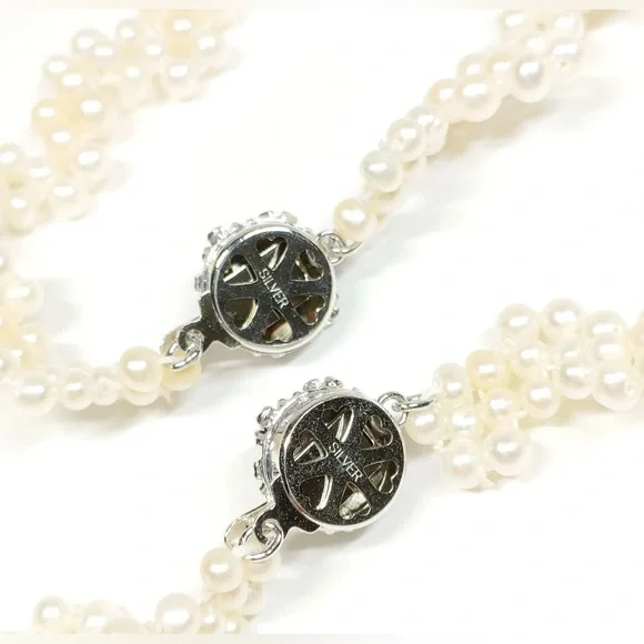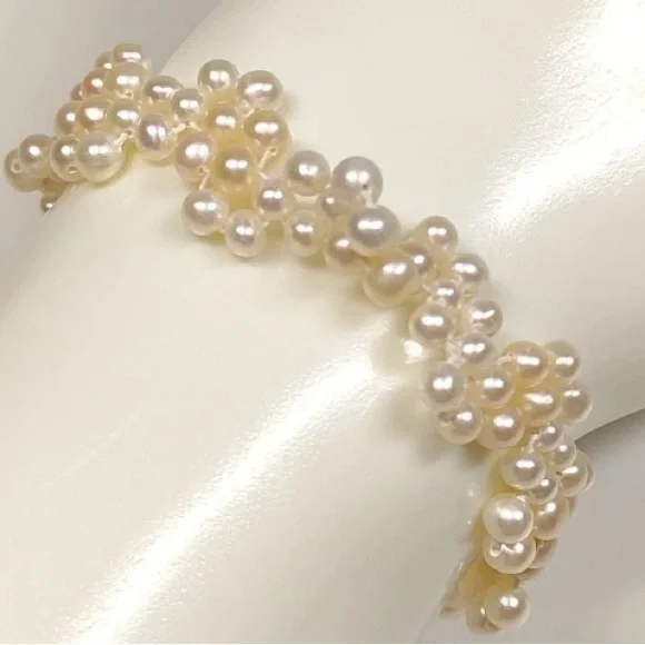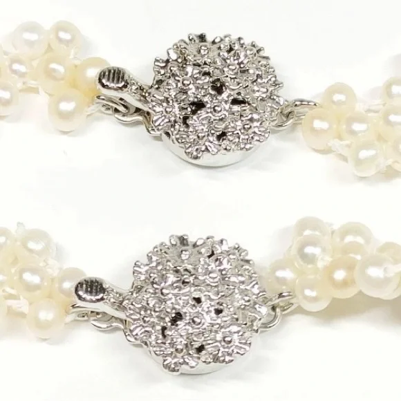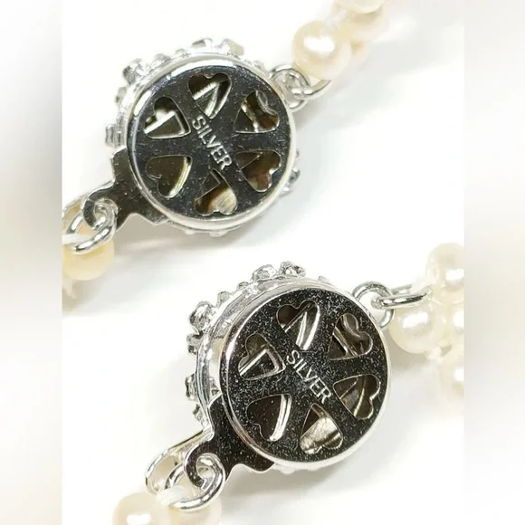 Elegant Pearl Choker Necklace and Bracelet with silver clasps