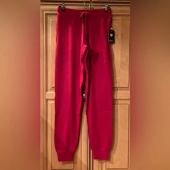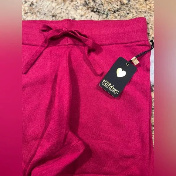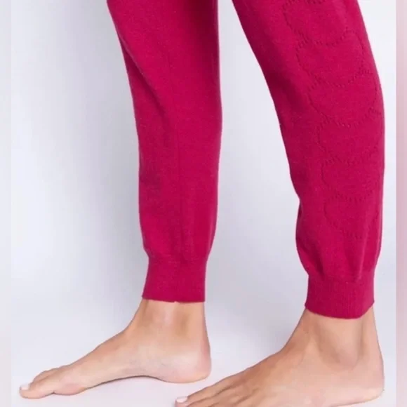 NWT PJ Salvage Pretty In Pointelle Sweater Knit Jogger.Color: RaspberrySize: SmallApproximate Measurements: Waist 14-1/2” (Stretch to 17”), Rise 11” & Inseam 32”Material: 80% Polyester / 10% Hemp / 10% RayonNew With Tag!!!Features:- Feel comfortable in these warm sweater knit joggers- No-dig comfy waistband with self-tie drawstring- Convenient side pockets for your small items- Heart pattern down sides of legs with ribbed cuffs