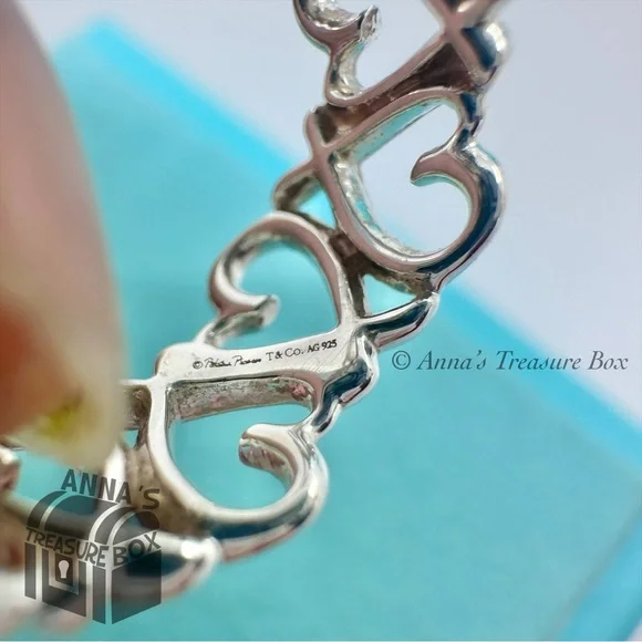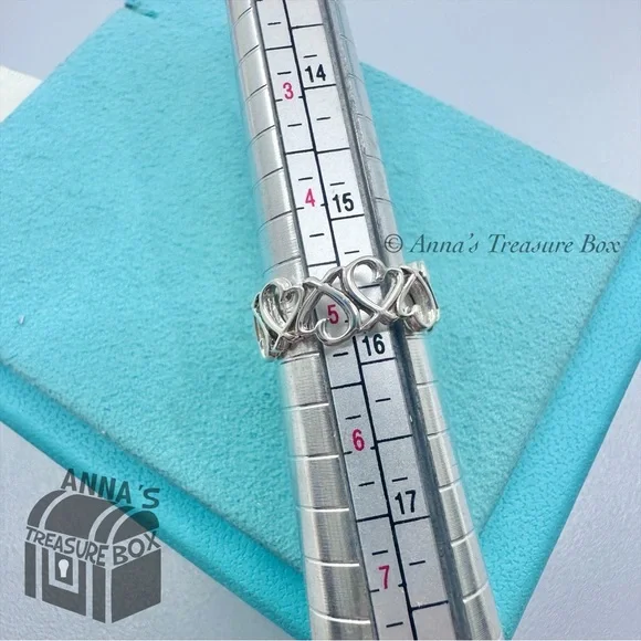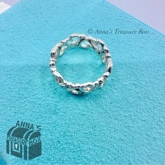Pre-owned.In pristine condition. Kept in Tiffany blue pouch, ready for gifting.This is an authentic Tiffany & Co. 925 silver endless multi loving heart ring.Ring is size 5.The entire ring is made of loving hearts.Dime for size comparison.Please see all photos and video on this beautiful ring.Comes with Tiffany blue pouch.If you have any questions, please ask :)