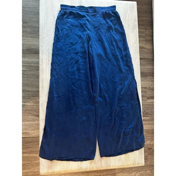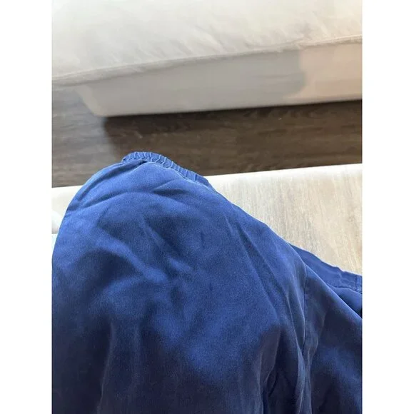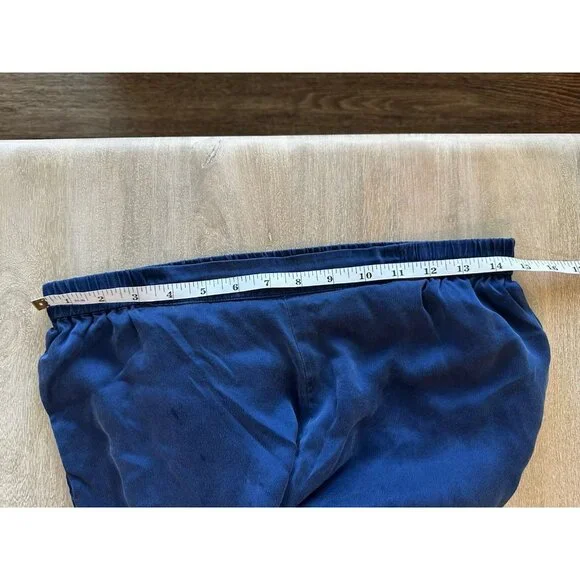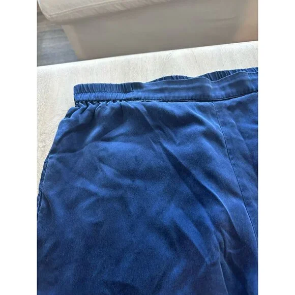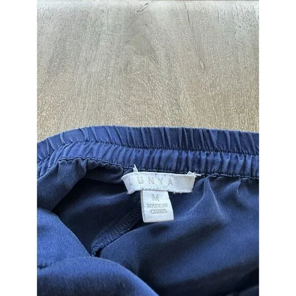 LUNYA Washable Silk Pant in Deep Navy Size Medium. Pants are in excellent condition, but have a few stains on the front as pictured. Have not tried to get them out. Slip into...
