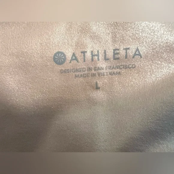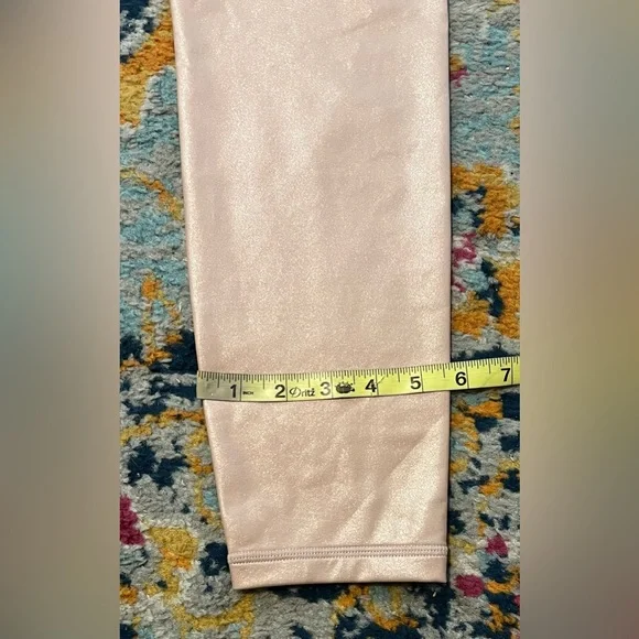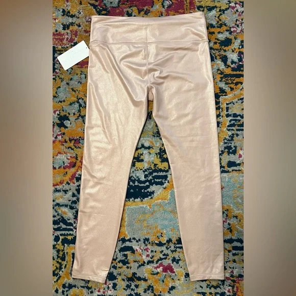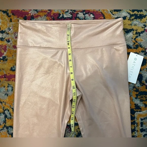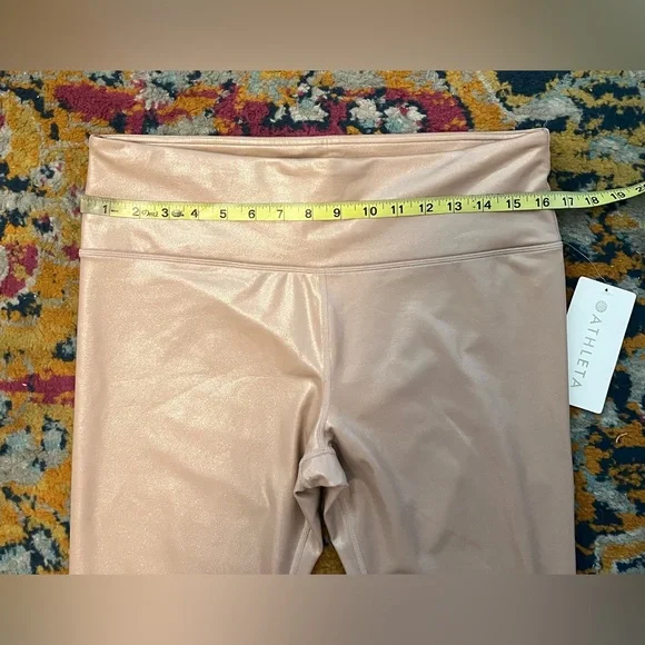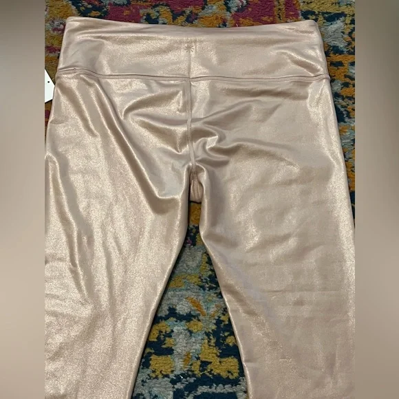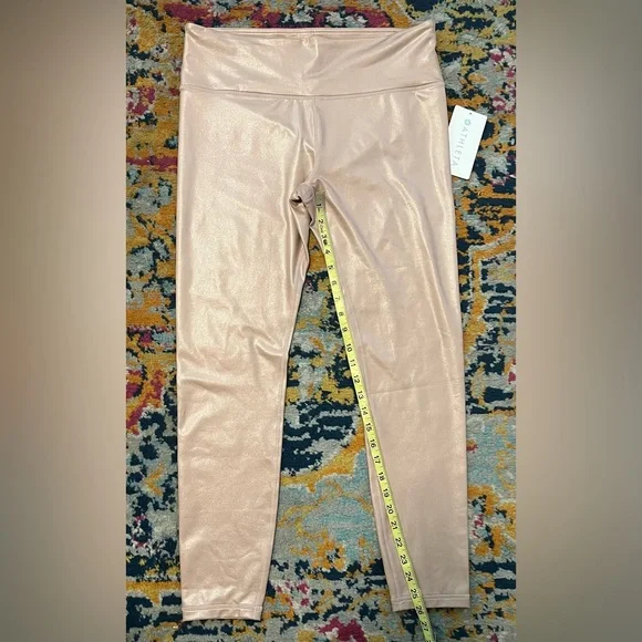 Athleta Elation Shimmer Tight Legging. Blush pink color. NWT. Elevate your activewear game with these Athleta Women´s Elation Shimmer Tight Leggings in Powervita Blush Pink. Designed for comfort and stretch, these leggings are perfect for various activities such as tennis, cycling, yoga, and even dancing. The ankle style and shimmer accents add a touch of uniqueness, while the logo detailing showcases your impeccable taste in fashion. 75% Polyester, 25% Lycra, Spandex. Made for women, these leggings are available in size L and are suitable for travel, casual outings, and sports. With its versatile design, these leggings are a must-have for any fitness enthusiast. So, whether you´re into bodybuilding, hiking, or weightlifting, these Athleta leggings are the perfect addition to your wardrobe. New with tags. No call outs. Please see pictures for reference, condition and measurements.