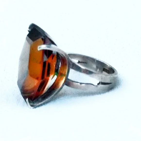 Oversized Vintage Smoky Quartz Sterling Silver Art Deco Estate Cocktail Ring. Size 7.75. Hexagonal Face of the gemstone measures approximately 1.2" x .75" with a depth of about .5". Firmly secured with four prongs. Hallmarked 925 for Sterling Silver. In excellent condition.