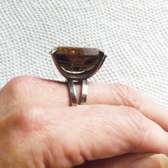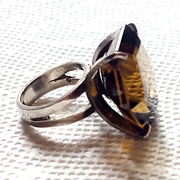 Oversized Vintage Smoky Quartz Sterling Silver Cocktail Ring- Size 7.75