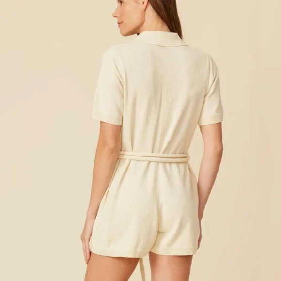 An Effortless Spring Romper In An Easy Slouchy Silhouette, Accentuated With A Large Belt Around The Waist. Knit In Our Cotton Boucle Yarn For Subtle Texture.Model Is 5′ 9″ Wearing Size Small59% Cotton, 41% NylonNew with tags sealed in bag