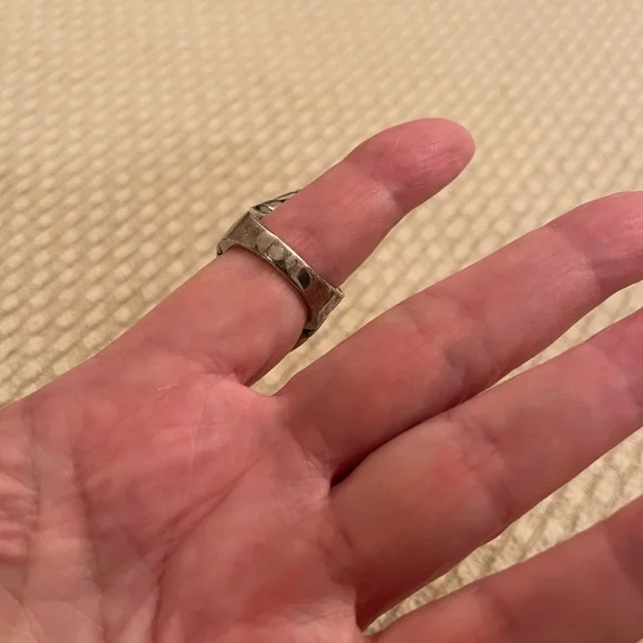 John Hardy Kali Asymetrical ring representing river rocks. Sweeps across your finger for an impressive statement. I can pretty much guarantee you that if you need this size, this is the only one you will find, I paid $100 to have this sized to an 8.75. Almost 1” wide. Excellent condition. Not sure I ever wore it.