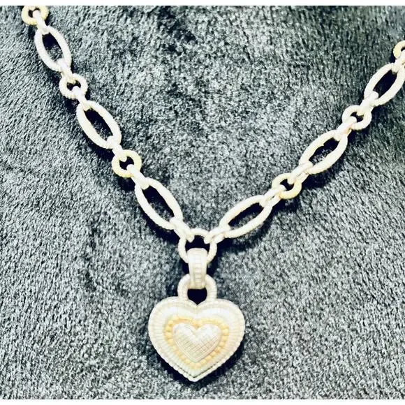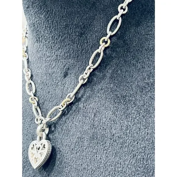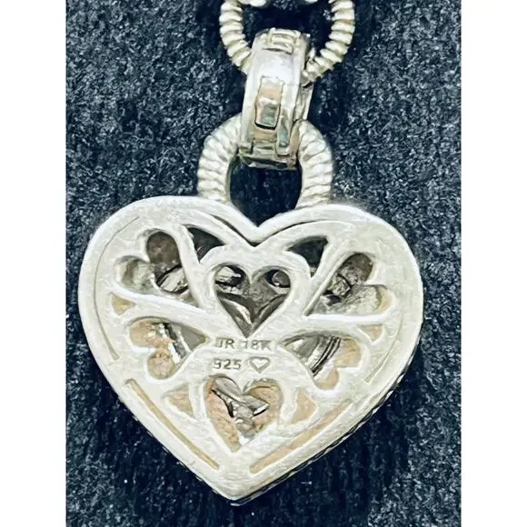 Judith Ripka 925 Sterling Silver 18k Gold Filigree Heart Pendant Necklace