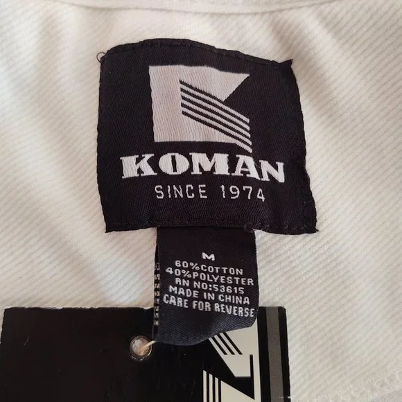 Brand: KOMANSize: MediumColor: Natural (Off White)Condition: NWTMaterial: Cotton/Polyester BlendWidth: 22.5" (pit to pit)Length: 25.75:ALL MEASUREMENTS ARE TAKEN WITH THE GARMENT LAYING FLAT
