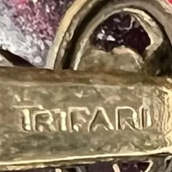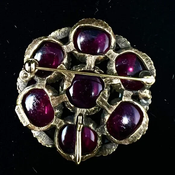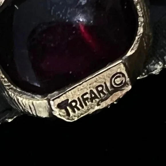 Crown Trifari Renaissance Signed 3 Pc Set Brooch Earrings Bracelet Cranberry Red