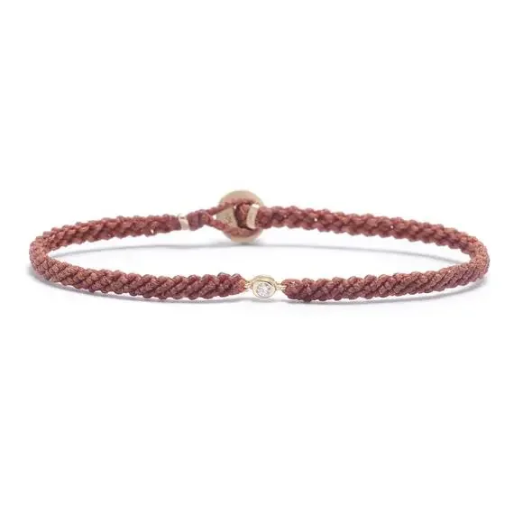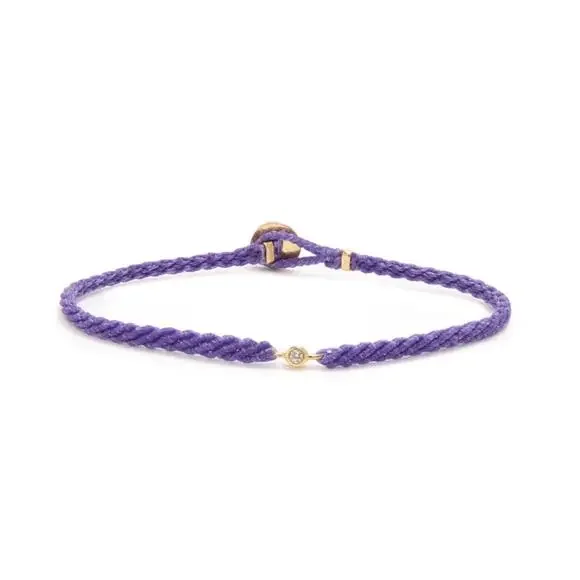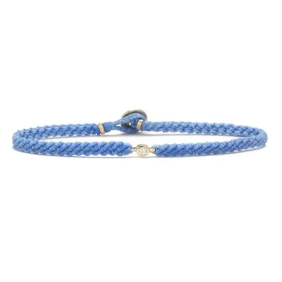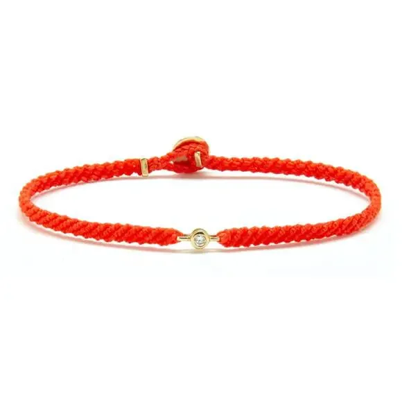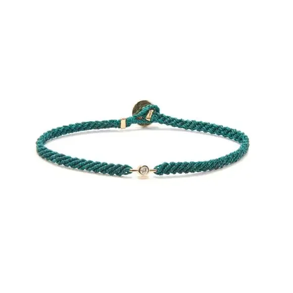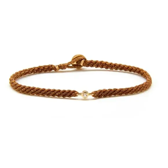 Hand-woven using precious metal and gemstones, SCOSHA´s Classic Diamond Bracelet symbolizes connection, community and interconnectedness.Cast from solid gold set with brilliant white diamond on nylon cord, the perfect combination of the ordinary and the extraordinary. Created in a bunch of different colors, each bracelet is braided by hand using premium nylon cord and lightly coated with wax for a 100% water resistant finish, so you can confidently wear your bracelet to shower, swim or surf.