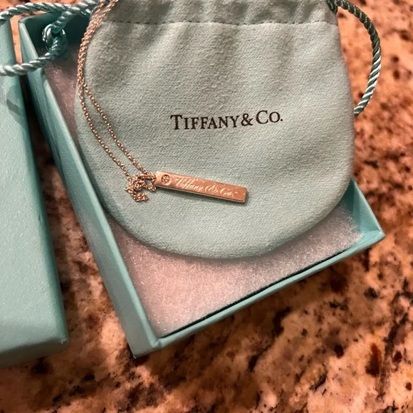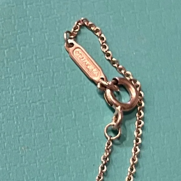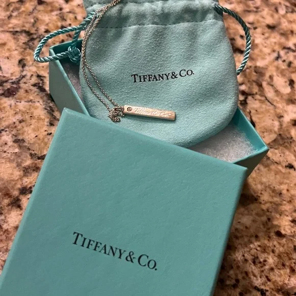 Tiffany & Co sterling silver necklace.Tag with diamond on an 18” chain.
