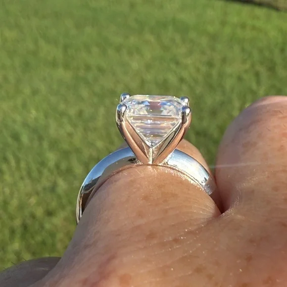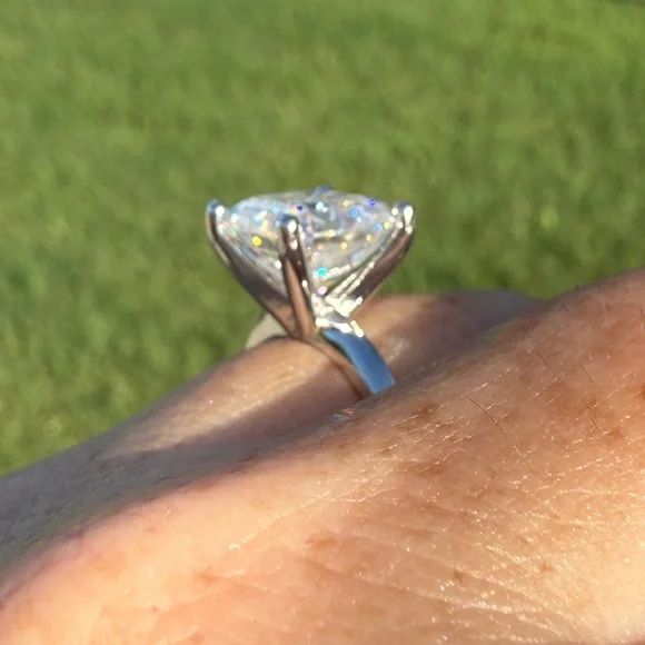 This stunning silver ring features a stunning 5 carat rare cut Moissanite stone. Its elegant design adds a touch of sophistication to your look.5 carat solitaire setting Solid sterling silver Sizes available689
