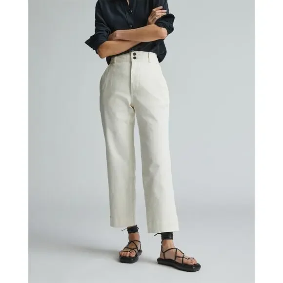 NWT Everlane The Organic Cotton Straight Leg Crop Pant In Bone Size 16
