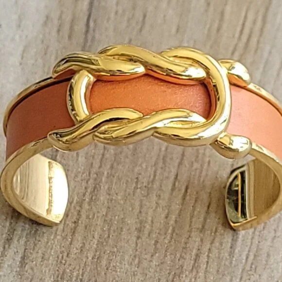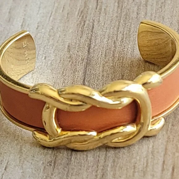 Hermes Gold VermeilLeather Vintage Knot Bangle