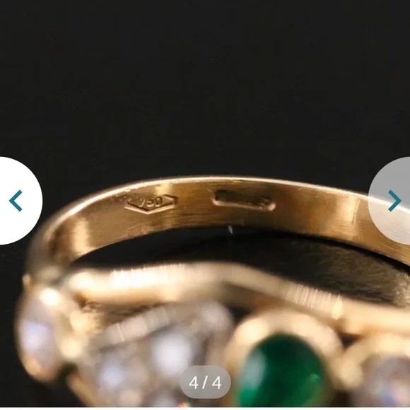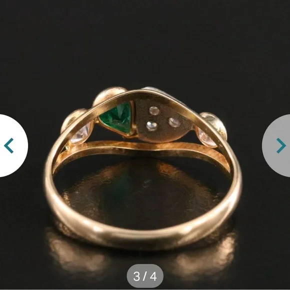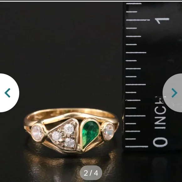 This elegant ring features a stunning green gemstone set in a luxurious 18k yellow gold band.Size 6.252.5 grams