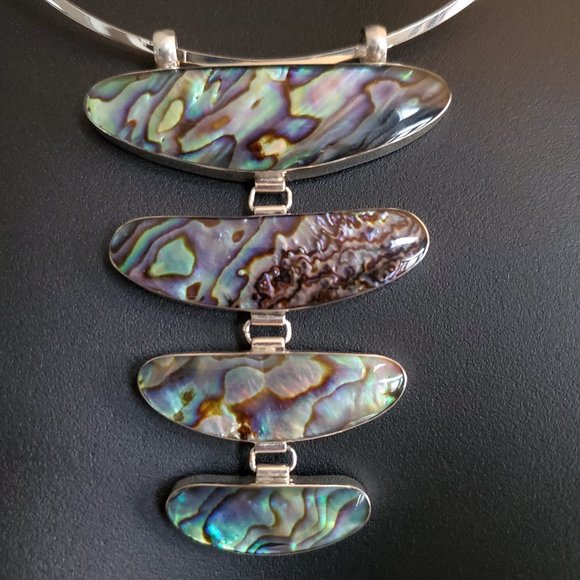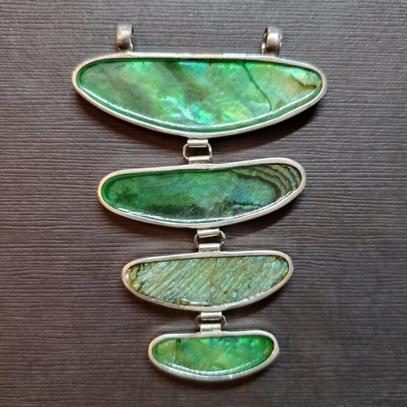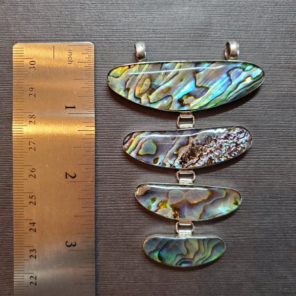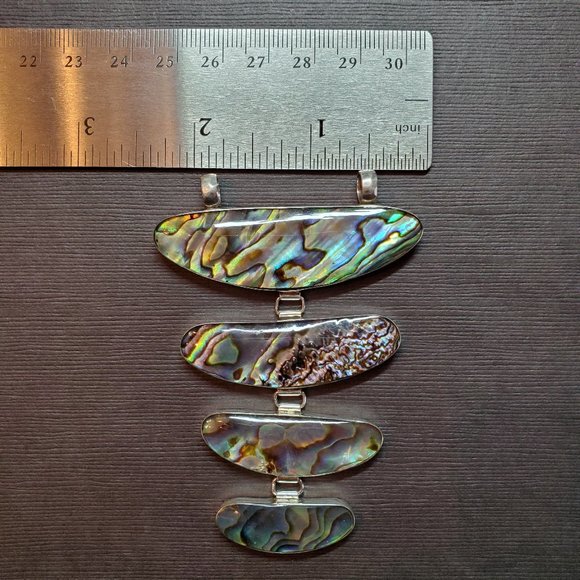 You´ll never come across another Abalone quite like this one. STUNNING!!!!Along with its dreamy and ethereal aesthetics, the Abalone shell meaning comes from its connection to the ocean and its healing, calming energy.Abalone healing carries energies of protection and emotional balance.- 925 Stamped Sterling Siver- Pendant measures 3.15" long x 2.28" wide (approximately at widest parts)- Weighs 20.84 grams- Pendany ONLY (necklace in photo is NOT INCLUDED)