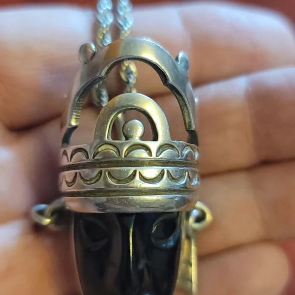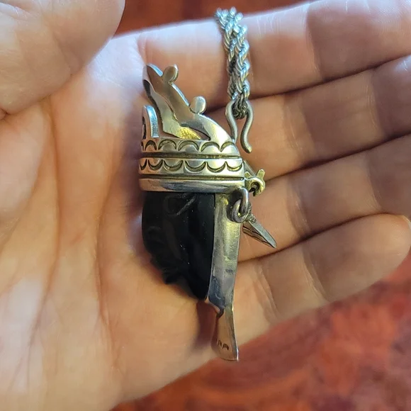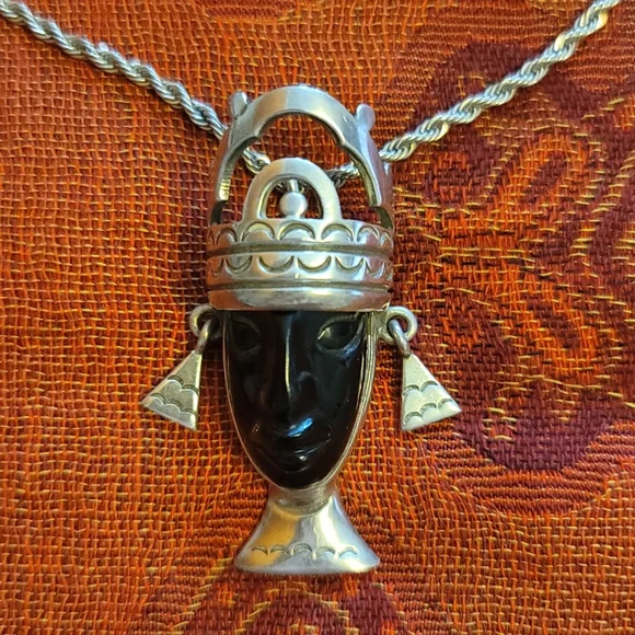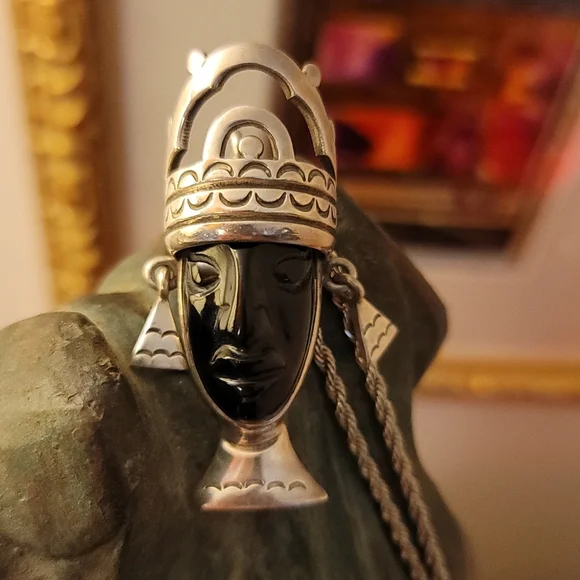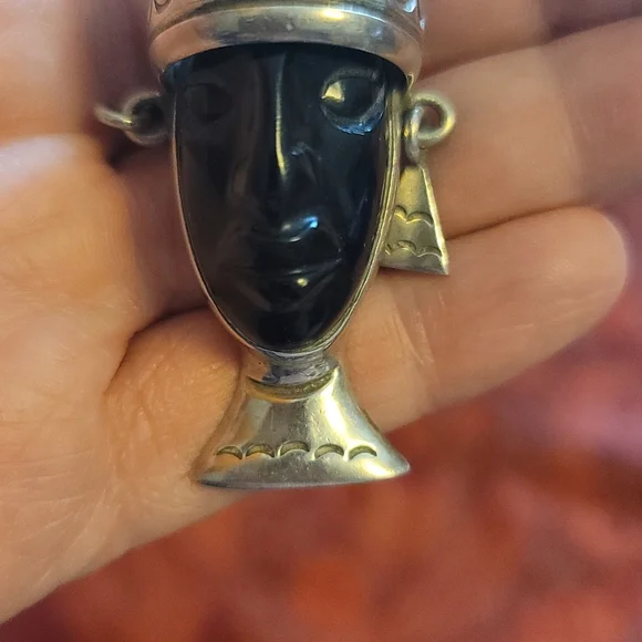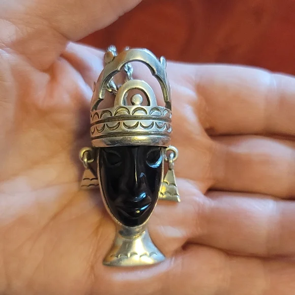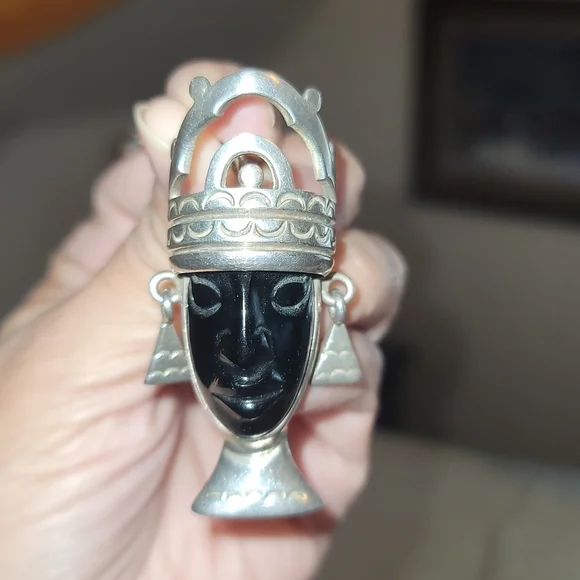 Black Onyx & .925 Sterling Silver Head Pendant/Brooch