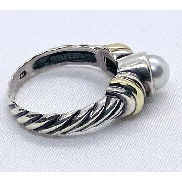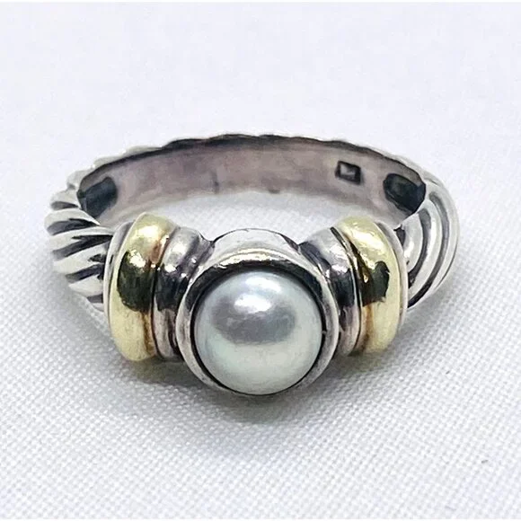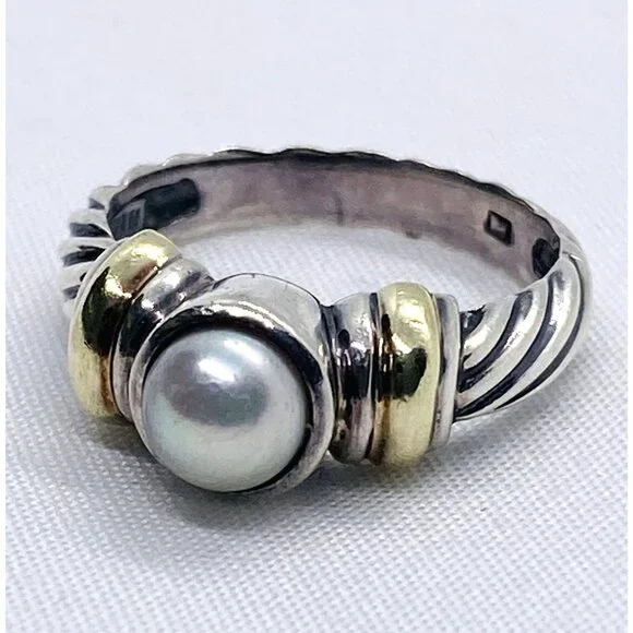 David Yurman 14K 585 Sterling Silver Pearl RingPearl is about 5.5mmSize is a 6.25Overall in good condition